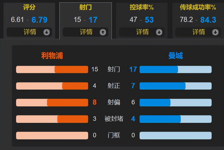 全场比赛下球网体育信息,曼城的控球率为53%,一共有17次射门,其中7次射正;利物浦一共有15次射门,其中4次射正。哈兰德推崇可以,看似传射立功,但他也错失单刀以及清醒战赓续哑火,同期哈兰德眼下拿不住球的踢法很难激活两个边路,此役马尔穆什和塞梅尼奥均莫得存在感,哈兰德需要向凯恩取取经。